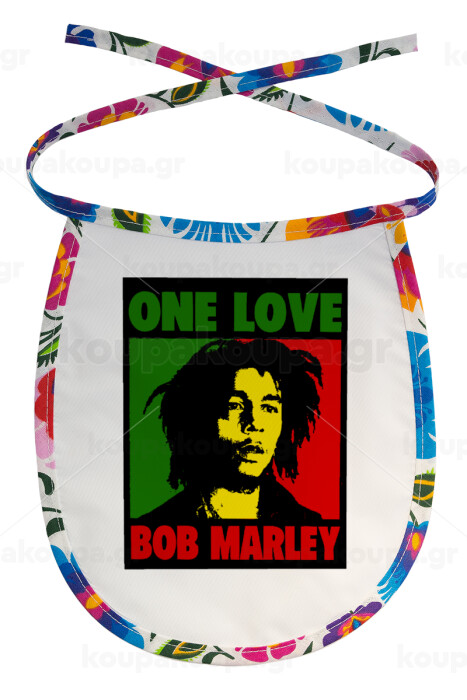 Bob marley, one love, Σαλιάρα μωρού αλέκιαστη με κορδόνι Χρωματιστή