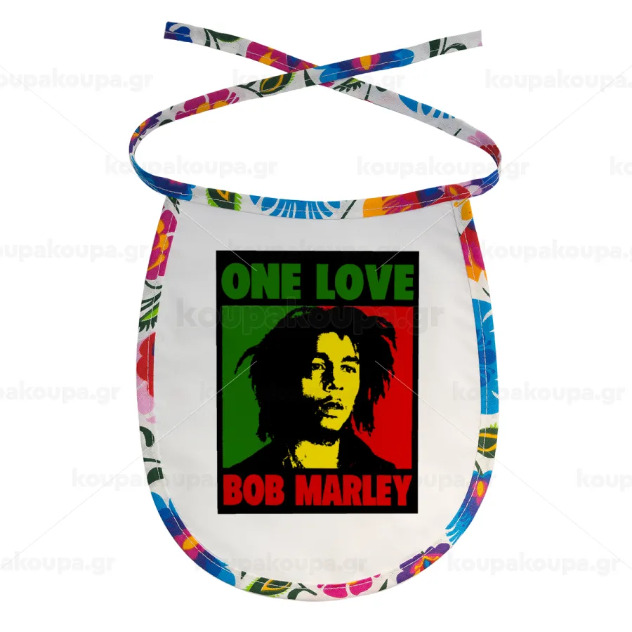 Bob marley, one love, Σαλιάρα μωρού αλέκιαστη με κορδόνι Χρωματιστή