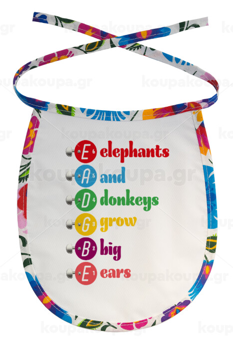 Elephants And Donkeys Grow Big Ears, Σαλιάρα μωρού αλέκιαστη με κορδόνι Χρωματιστή