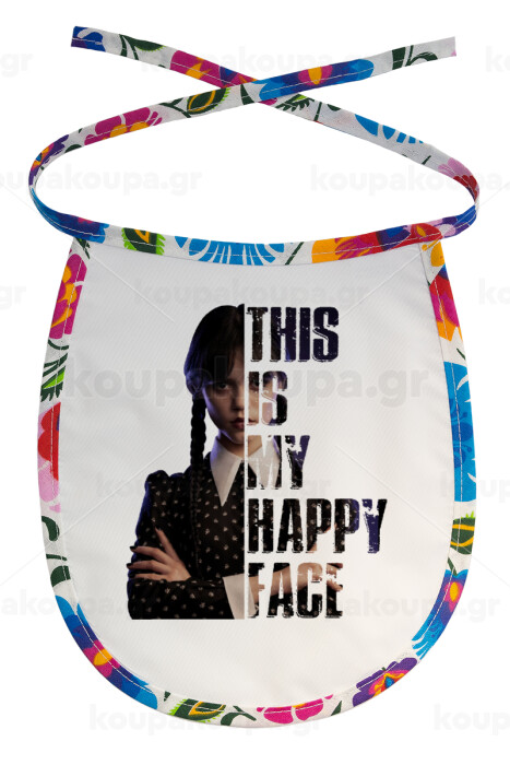 Wednesday, This is my happy face, Σαλιάρα μωρού αλέκιαστη με κορδόνι Χρωματιστή