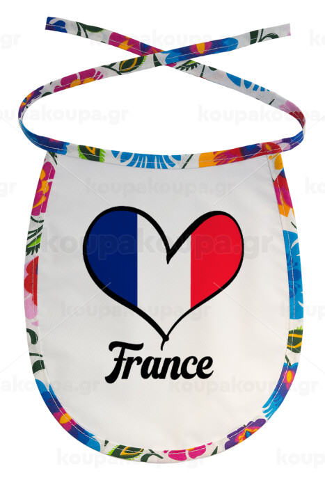 France flag, Σαλιάρα μωρού αλέκιαστη με κορδόνι Χρωματιστή