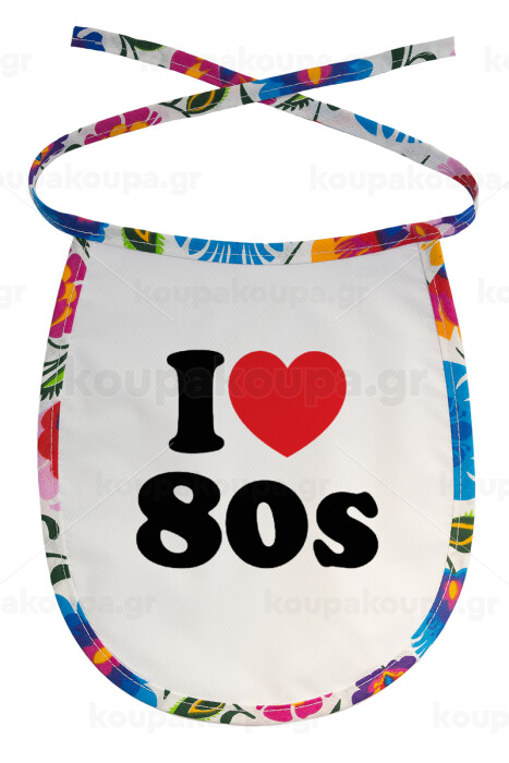 I Love 80s, Σαλιάρα μωρού αλέκιαστη με κορδόνι Χρωματιστή