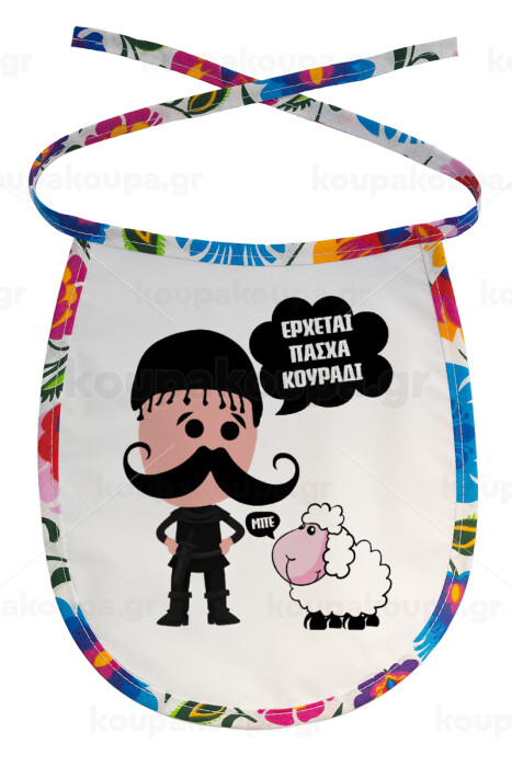 Κρητικός "Έρχεται Πάσχα κουράδι", Σαλιάρα μωρού αλέκιαστη με κορδόνι Χρωματιστή