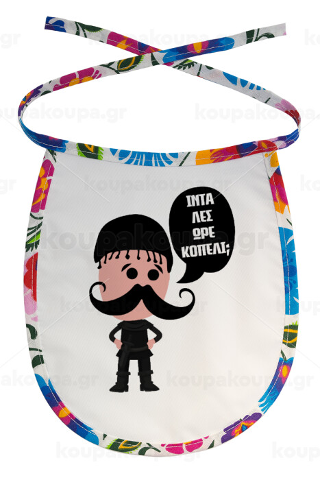 Κρητικός "Ίντα λες ωρέ κοπέλι", Σαλιάρα μωρού αλέκιαστη με κορδόνι Χρωματιστή
