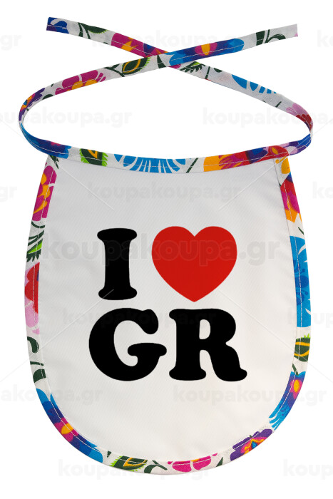 I Love GR, Σαλιάρα μωρού αλέκιαστη με κορδόνι Χρωματιστή