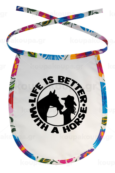 Life is Better with a Horse, Σαλιάρα μωρού αλέκιαστη με κορδόνι Χρωματιστή