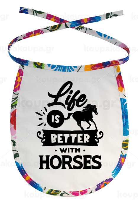 Life is Better with a Horses, Σαλιάρα μωρού αλέκιαστη με κορδόνι Χρωματιστή