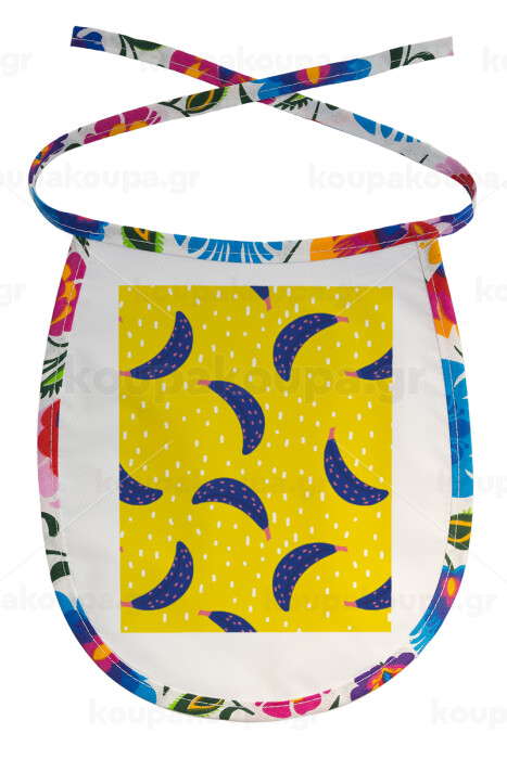 Yellow seamless with blue bananas, Σαλιάρα μωρού αλέκιαστη με κορδόνι Χρωματιστή