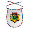 Bib with cord with impressive designs that will make the baby look forward to mealtime.Comfortable and large cords for the neck (100% cotton).Stain-resistant, waterproof and lightweight fabric for a very good feel and protection of the baby.
