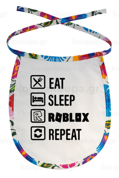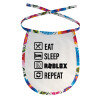 Eat, Sleep, Roblox, Repeat, Σαλιάρα μωρού αλέκιαστη με κορδόνι Χρωματιστή