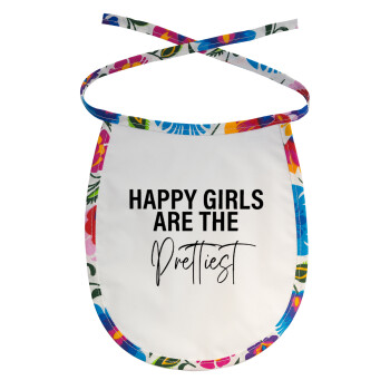 Happy girls are the prettiest, Σαλιάρα μωρού αλέκιαστη με κορδόνι Χρωματιστή