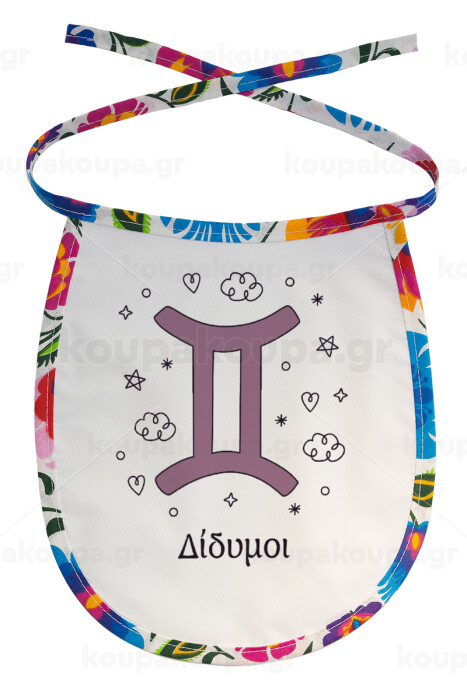 Ζώδια Δίδυμοι, Σαλιάρα μωρού αλέκιαστη με κορδόνι Χρωματιστή