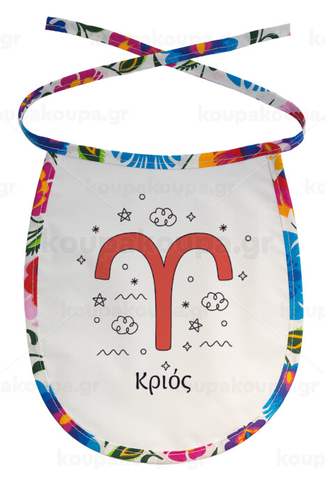 Ζώδια Κριός, Σαλιάρα μωρού αλέκιαστη με κορδόνι Χρωματιστή