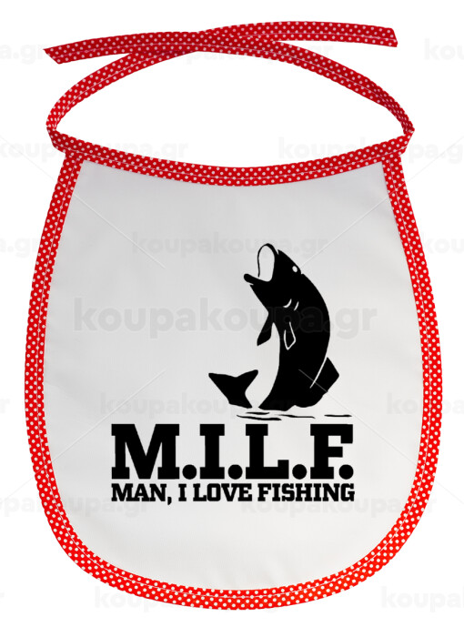 M.I.L.F. Mam i love fishing, Σαλιάρα μωρού αλέκιαστη με κορδόνι Κόκκινη