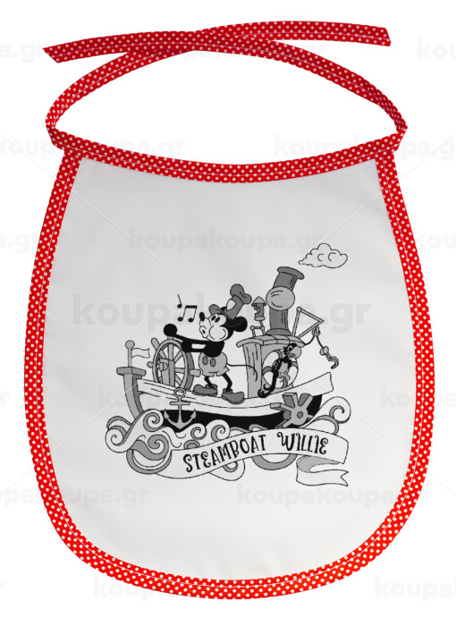 Mickey steamboat, Σαλιάρα μωρού αλέκιαστη με κορδόνι Κόκκινη