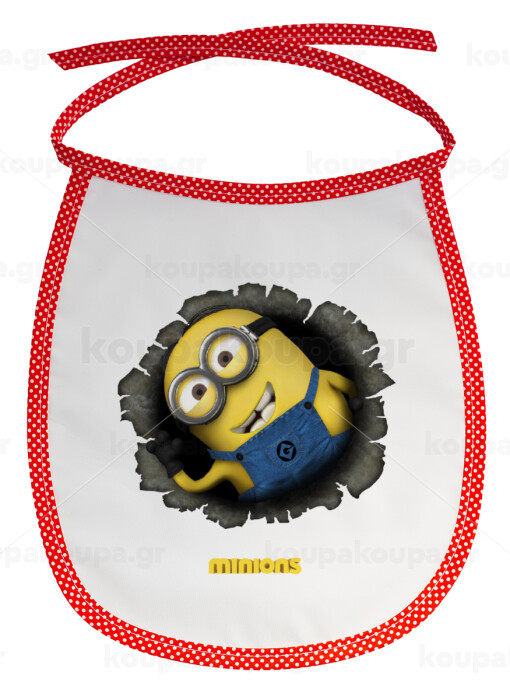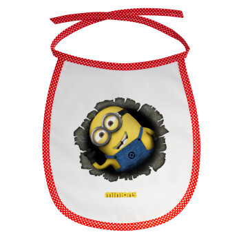 Minions hi, Σαλιάρα μωρού αλέκιαστη με κορδόνι Κόκκινη
