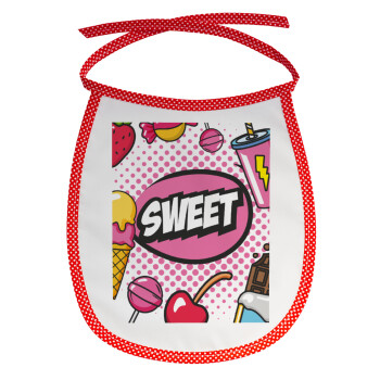 SWEET, Σαλιάρα μωρού αλέκιαστη με κορδόνι Κόκκινη