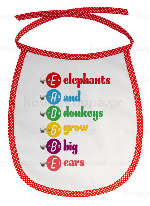 Elephants And Donkeys Grow Big Ears, Σαλιάρα μωρού αλέκιαστη με κορδόνι Κόκκινη