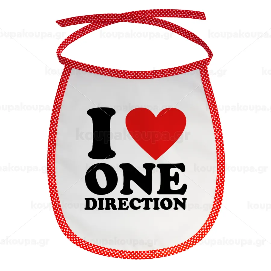 I Love, One Direction, Σαλιάρα μωρού αλέκιαστη με κορδόνι Κόκκινη
