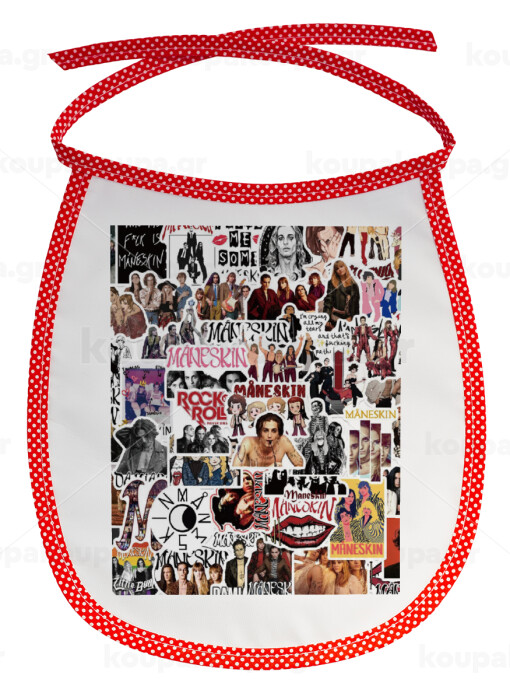 Maneskin stickers, Σαλιάρα μωρού αλέκιαστη με κορδόνι Κόκκινη