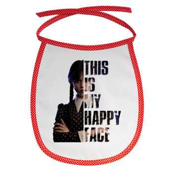 Wednesday, This is my happy face, Σαλιάρα μωρού αλέκιαστη με κορδόνι Κόκκινη
