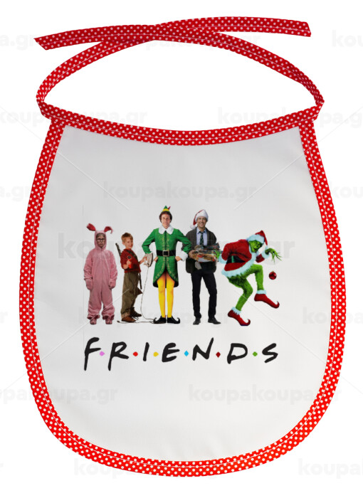 Christmas FRIENDS, Σαλιάρα μωρού αλέκιαστη με κορδόνι Κόκκινη