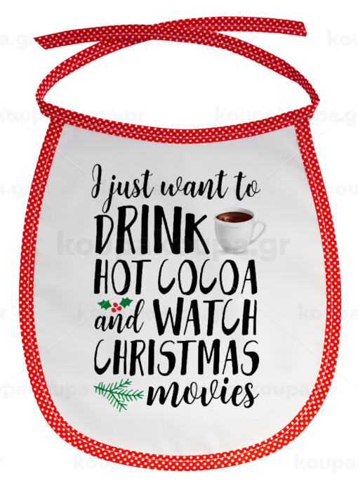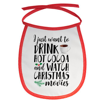 I just want to drink hot cocoa and watch christmas movies, Σαλιάρα μωρού αλέκιαστη με κορδόνι Κόκκινη