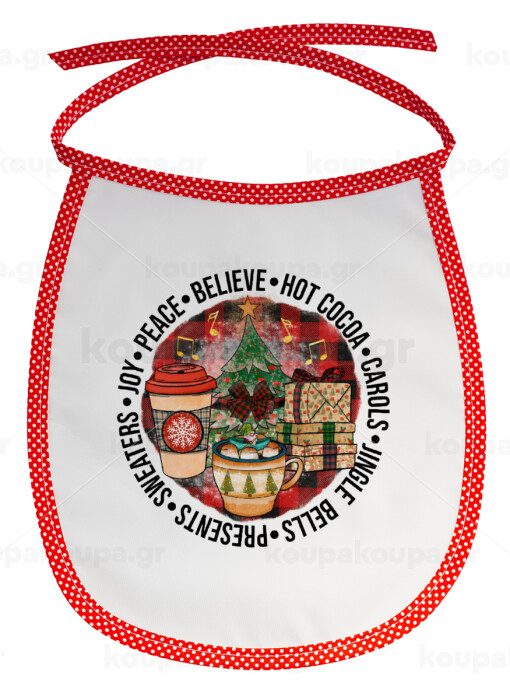 Joy, Peace, Believe, Hot Cocoa, Carols, Σαλιάρα μωρού αλέκιαστη με κορδόνι Κόκκινη