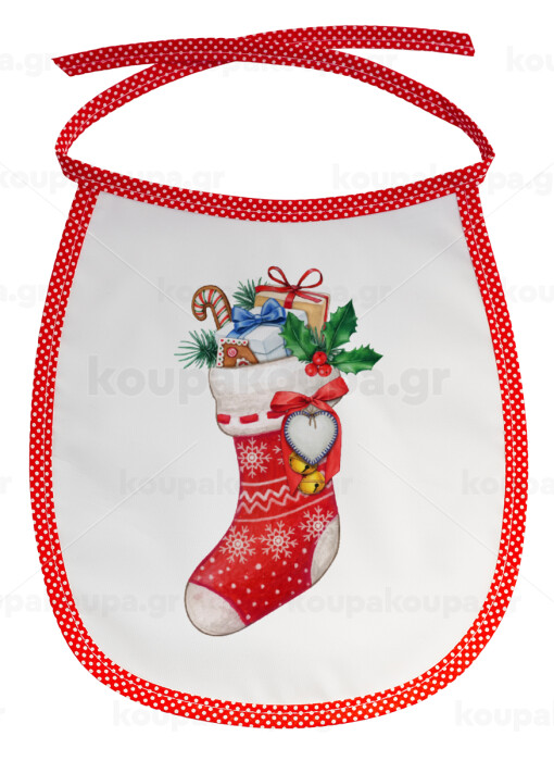 Xmas boot, Σαλιάρα μωρού αλέκιαστη με κορδόνι Κόκκινη