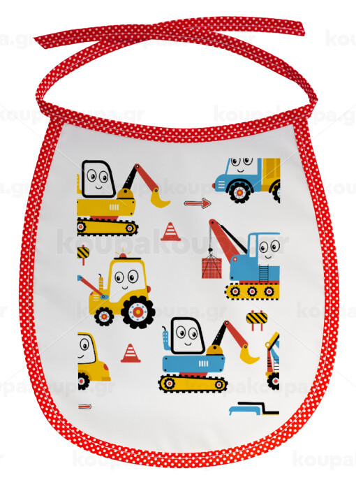 Hand drawing building truck, Σαλιάρα μωρού αλέκιαστη με κορδόνι Κόκκινη