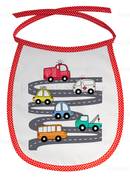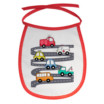 Hand drawn childish set with cars, Σαλιάρα μωρού αλέκιαστη με κορδόνι Κόκκινη