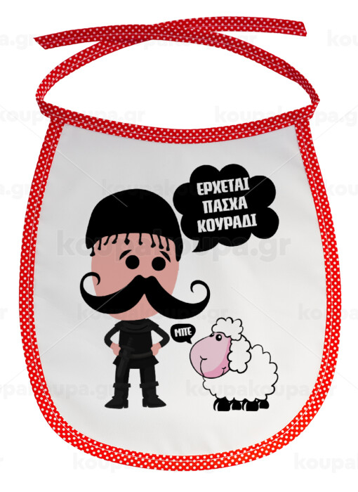 Κρητικός "Έρχεται Πάσχα κουράδι", Σαλιάρα μωρού αλέκιαστη με κορδόνι Κόκκινη