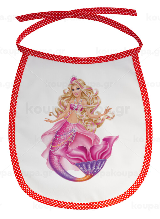 Barbie mermaid , Σαλιάρα μωρού αλέκιαστη με κορδόνι Κόκκινη