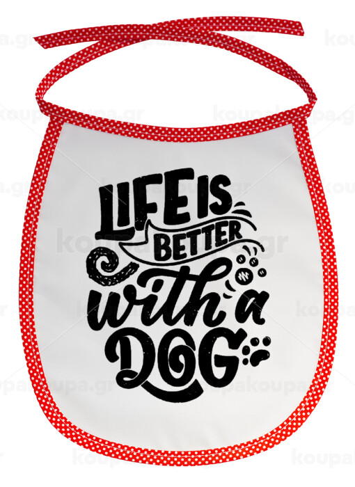 Life is better with a DOG, Σαλιάρα μωρού αλέκιαστη με κορδόνι Κόκκινη