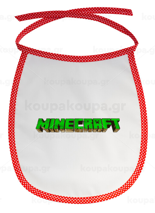 Minecraft logo green, Σαλιάρα μωρού αλέκιαστη με κορδόνι Κόκκινη