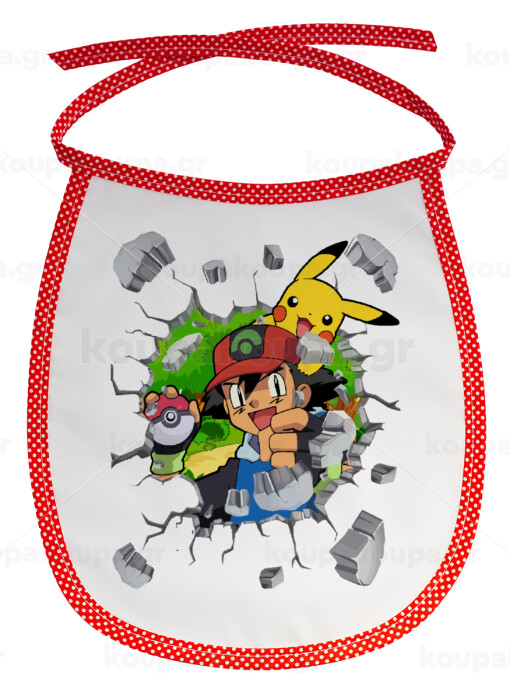 Pokemon brick, Σαλιάρα μωρού αλέκιαστη με κορδόνι Κόκκινη
