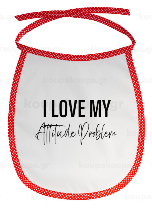 I love my attitude problem, Σαλιάρα μωρού αλέκιαστη με κορδόνι Κόκκινη