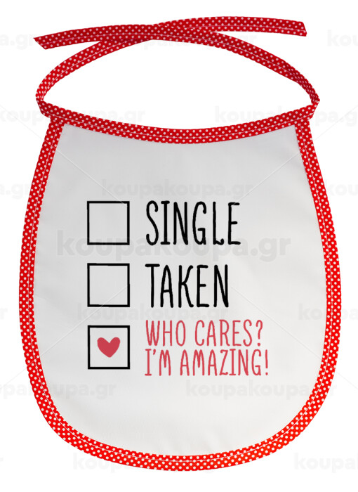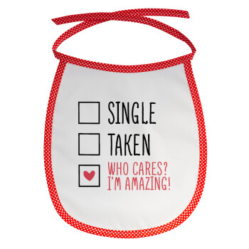 Single, Taken, Who cares i'm amazing, Σαλιάρα μωρού αλέκιαστη με κορδόνι Κόκκινη