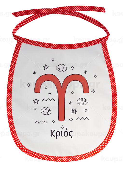 Ζώδια Κριός, Σαλιάρα μωρού αλέκιαστη με κορδόνι Κόκκινη