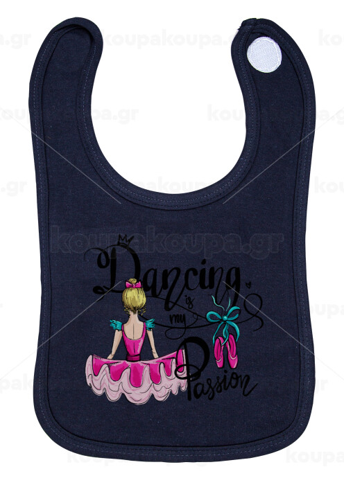 Dancing is my Passion, Σαλιάρα με Σκρατς 100% Organic Cotton Μπλε (0-18 months)