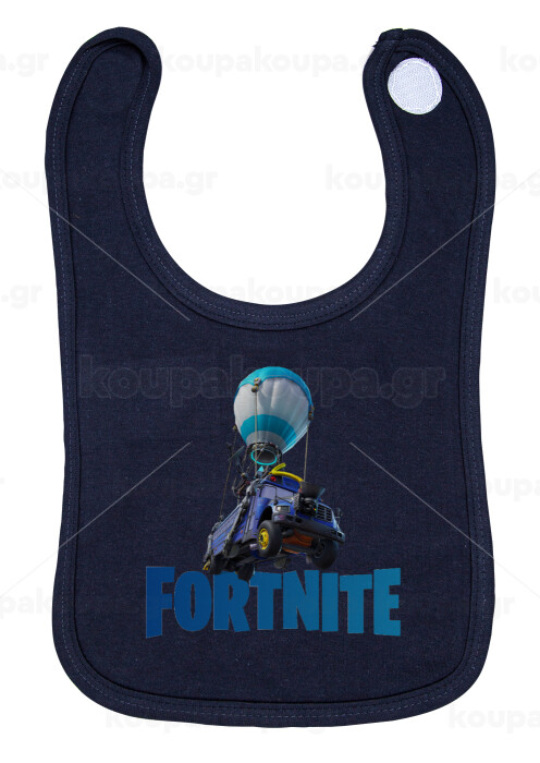 Fortnite Bus, Σαλιάρα με Σκρατς 100% Organic Cotton Μπλε (0-18 months)