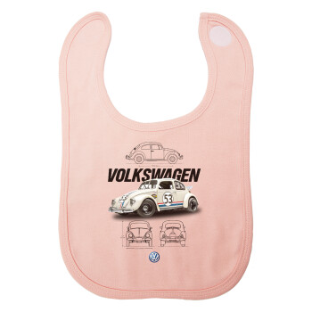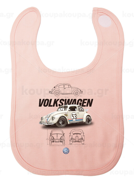 Volkswagen Beetle, Σαλιάρα με Σκρατς ΡΟΖ 100% Organic Cotton (0-18 months)