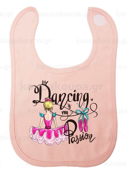 Dancing is my Passion, Σαλιάρα με Σκρατς ΡΟΖ 100% Organic Cotton (0-18 months)