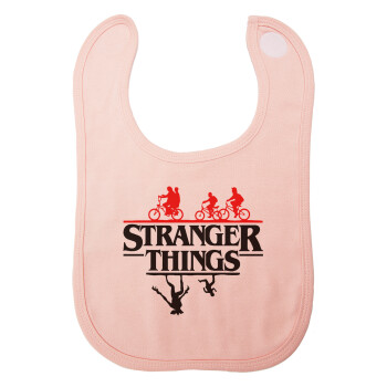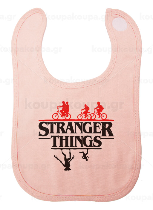 Stranger Things upside down, Σαλιάρα με Σκρατς ΡΟΖ 100% Organic Cotton (0-18 months)