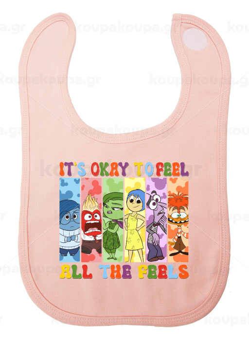 Inside Out It's Okay To Feel All The Feels , Σαλιάρα με Σκρατς ΡΟΖ 100% Organic Cotton (0-18 months)