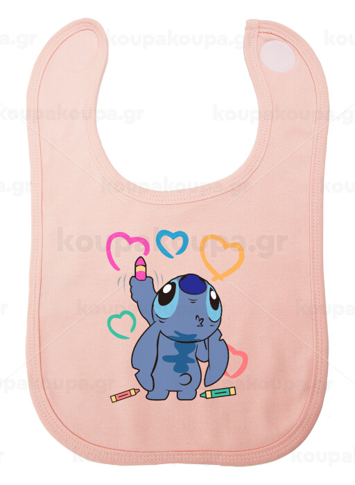 Lilo & Stitch painting, Σαλιάρα με Σκρατς ΡΟΖ 100% Organic Cotton (0-18 months)