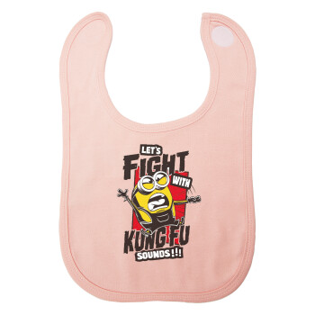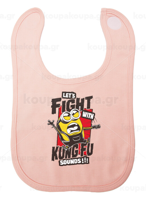 Minions Let's fight with kung fu sounds, Σαλιάρα με Σκρατς ΡΟΖ 100% Organic Cotton (0-18 months)