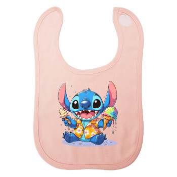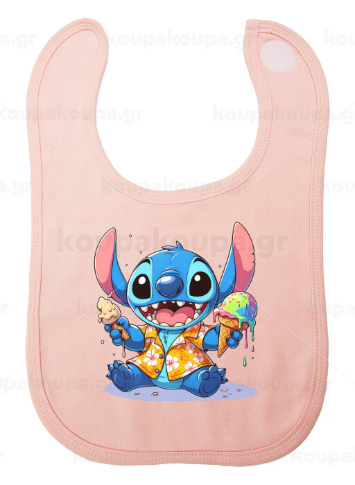 Stitch Ice cream, Σαλιάρα με Σκρατς ΡΟΖ 100% Organic Cotton (0-18 months)