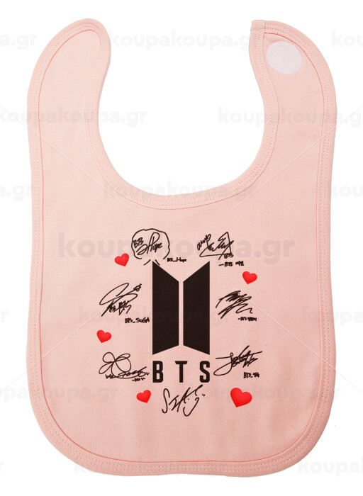 BTS signs, Σαλιάρα με Σκρατς ΡΟΖ 100% Organic Cotton (0-18 months)