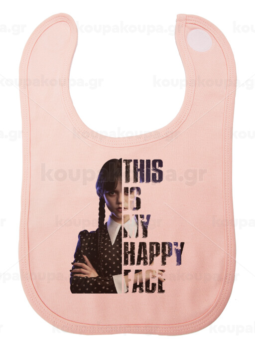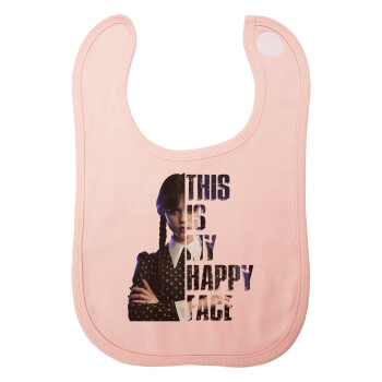 Wednesday, This is my happy face, Σαλιάρα με Σκρατς ΡΟΖ 100% Organic Cotton (0-18 months)